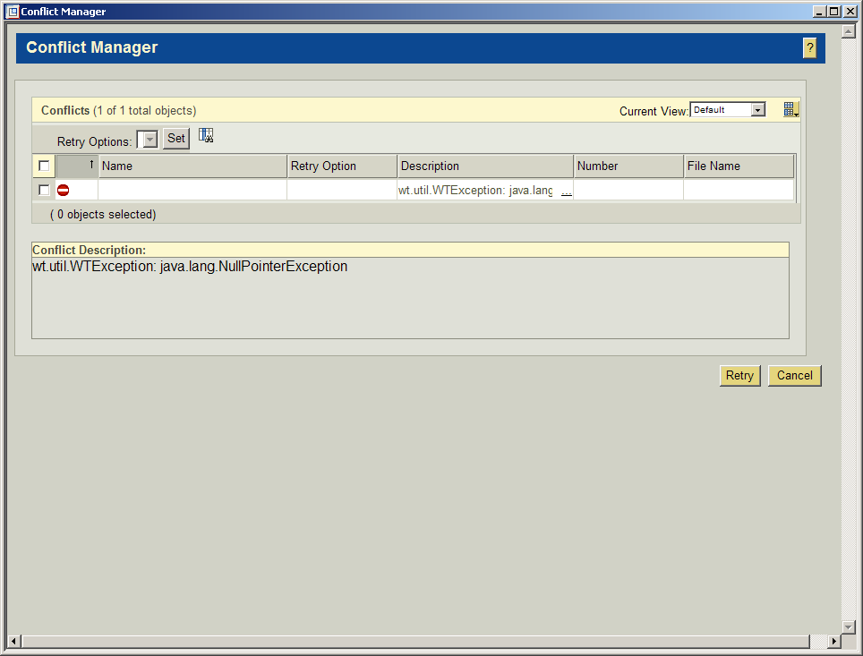 Intralink checkin error "wt.util.WTException: java.lang.NullPointerException"